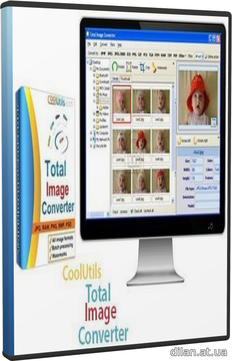 CoolUtils Total Image Converter преобразует изображения в желаемый вами формат, изменит размеры и перевернёт фотографии и картинки. Total Image Converter сделает всё, что вам потребуется: вы сможете преобразовывать большие TIFF изображения в маленькие JPEG, подгонять картинки под размеры веб-страницы или преобразовать RAW фотографии в более популярные форматы. Это мощнейший конвертер графики позволит значительно экономить время и работать с файлами на высоком уровне.