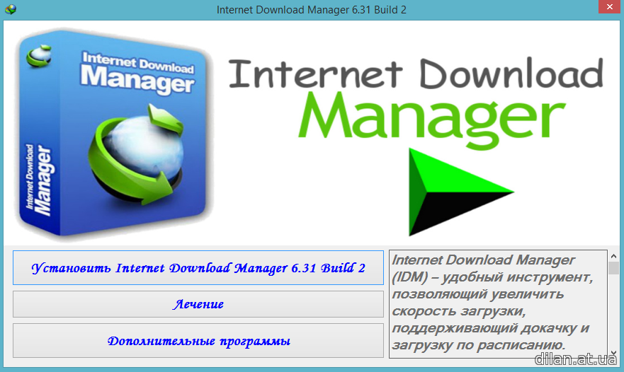 Internet Download Manager (IDM) – удобный инструмент, позволяющий увеличить скорость загрузки, поддерживающий докачку и загрузку по расписанию. Согласно мнениям пользователей, Internet Download Manager – отличная программа, позволяющая загружать ваше любимое программное обеспечение, игры, cd, dvd и mp3-музыку, фильмы, бесплатные и условно бесплатные программы намного быстрее! Internet Download Manager имеет встроенный логический ускоритель загрузки, включающий интеллектуальную динамическую сегментацию файла и безопасную многослойную технологию загрузки, что способствует ускорению загрузки. Комплексная система анализа ошибок и возможность докачки, поможет продолжить загрузку, прерванную из-за потери соединения, проблем в сети, выключения компьютера или перепадов в подаче электроэнергии. Простой графический интерфейс делает IDM удобным и дружественным к пользователю.